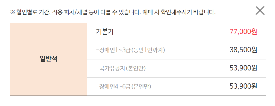 할인 대상자를 확인하여 할인가로 예매하시기 바랍니다.