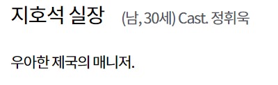 지호석 실장(정휘욱)은 우아한 제국의 매니저입니다.
