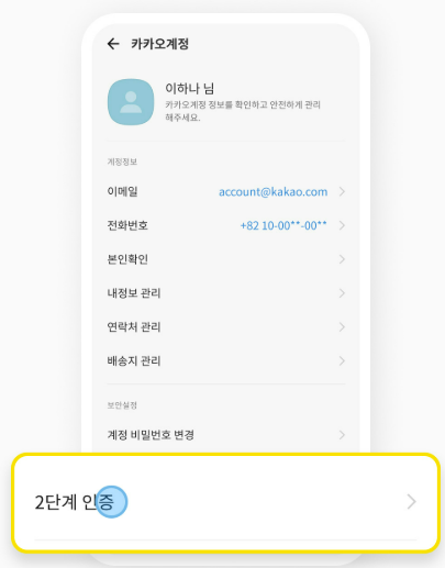 카카오 2단계 인증 설정 방법