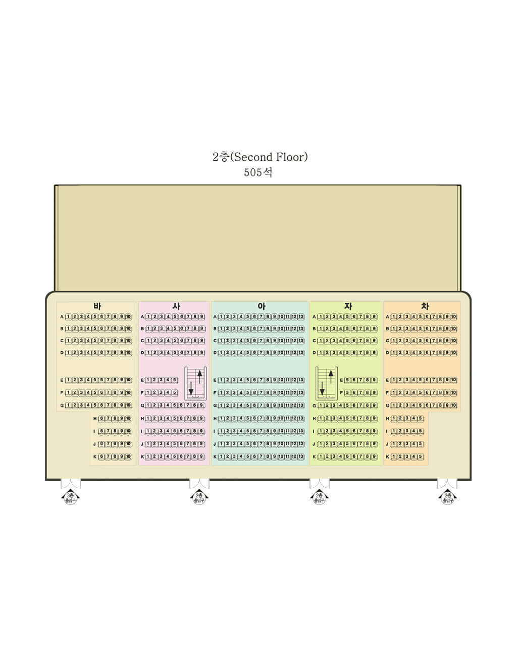 아래 사진은 연세대학교 대강당 1층과 2층 좌석배치도이니 참고해주시길 바랍니다.